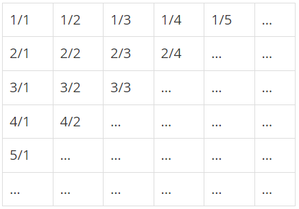 무한히 큰 배열에 다음과 같이 분수들이 적혀있다.