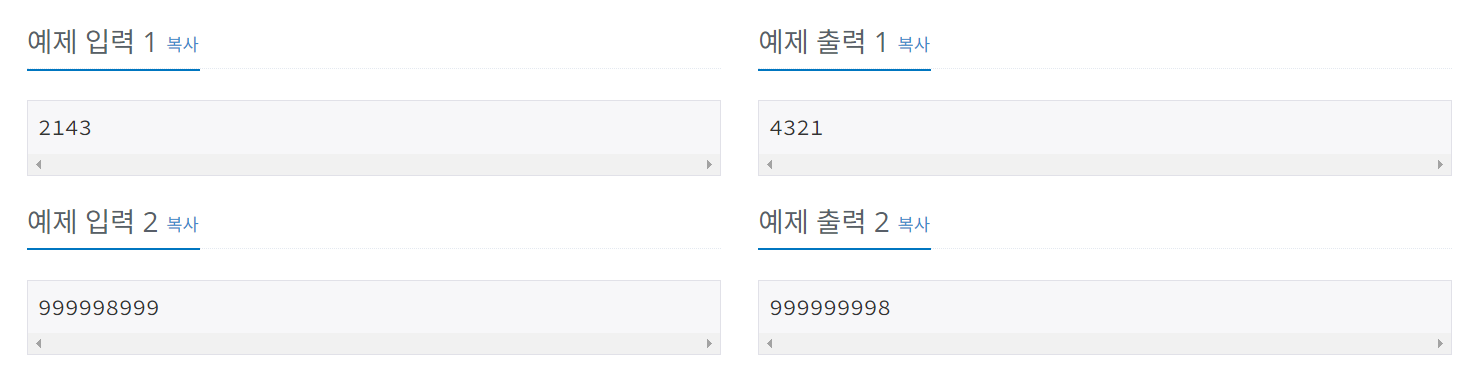 첫째 줄에 자리수를 내림차순으로 정렬한 수를 출력한다.