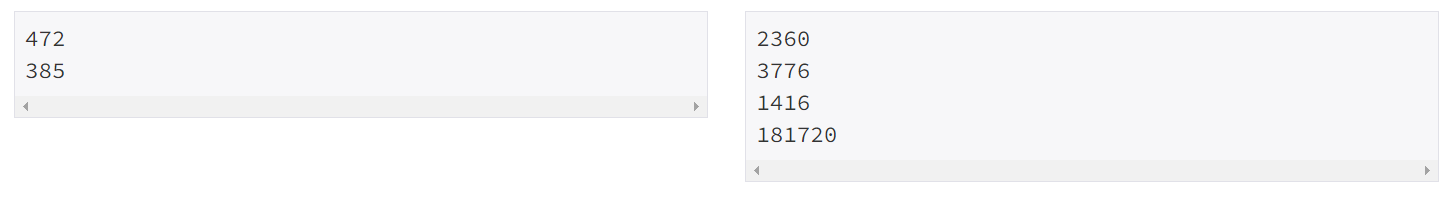 첫째 줄에 (1)의 위치에 들어갈 세 자리 자연수가, 둘째 줄에 (2)의 위치에 들어갈 세자리 자연수가 주어진다.